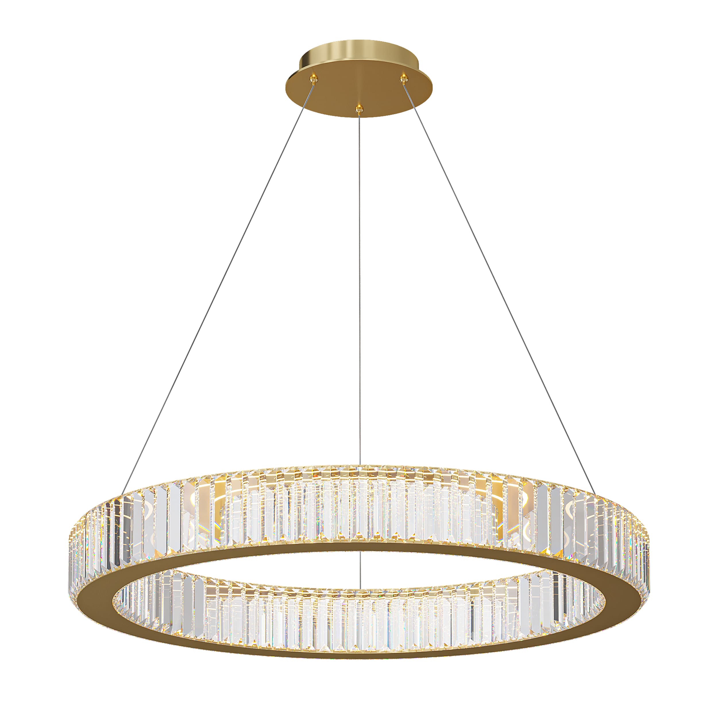 Кольцевая светодиодная люстра подвесная с прозрачными рассеивателями в виде прямоугольных хрустальных пластин золотая D80 4000К BERTOLDA