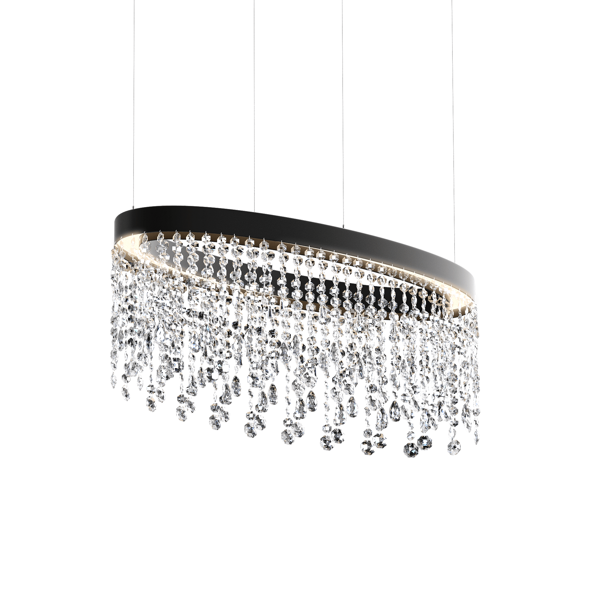 Подвесная овальная светодиодная люстра с хрусталем черная 120х40 3000К Eclisse
