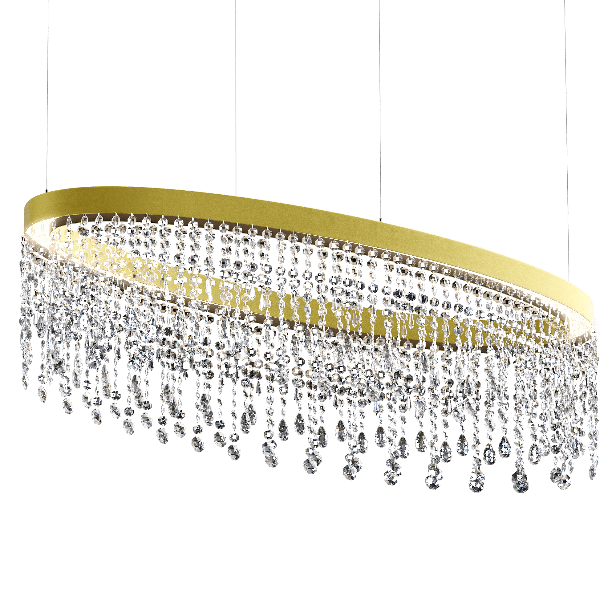 Подвесная овальная светодиодная люстра с хрусталем золотая 150х50 3000К Eclisse