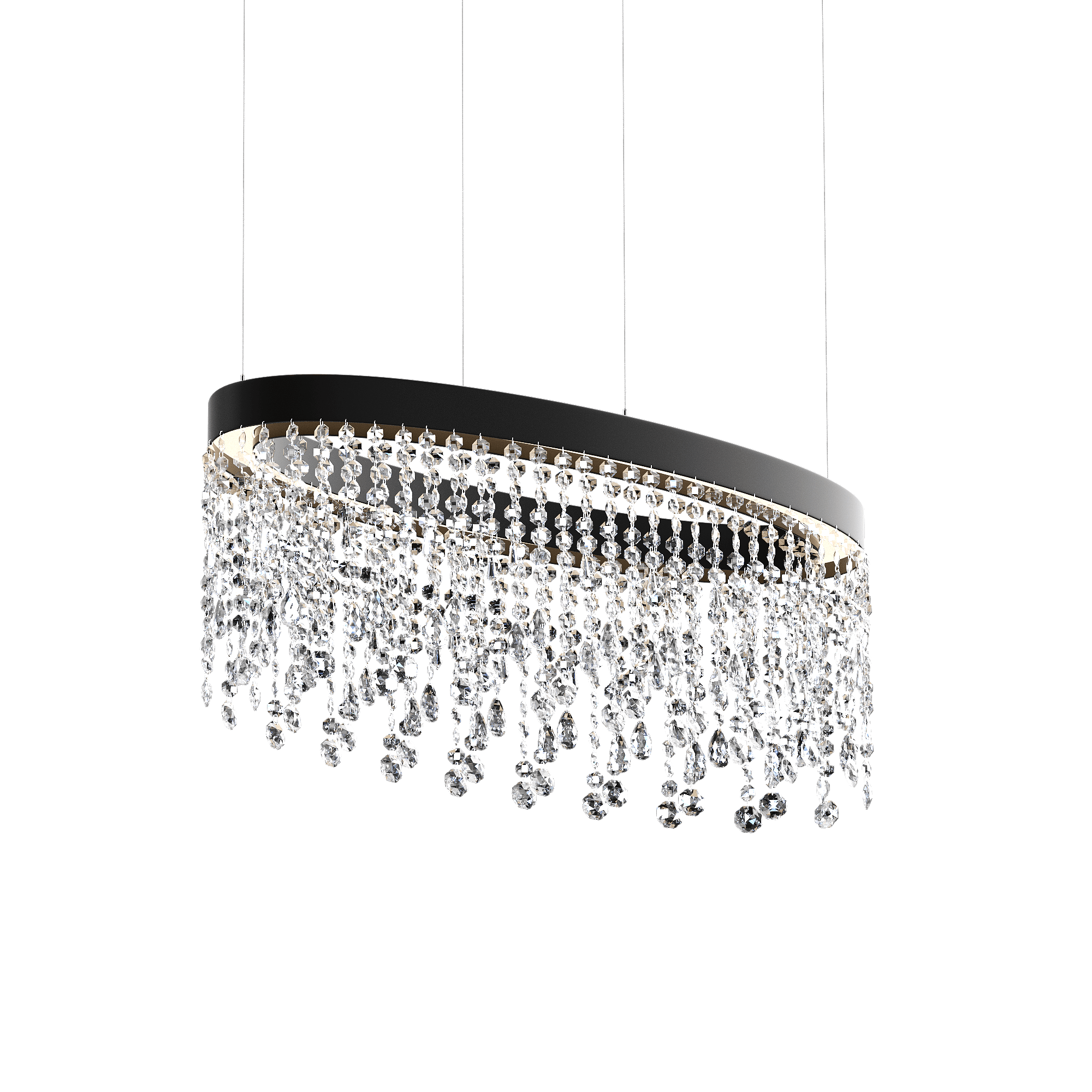 Подвесная овальная светодиодная люстра с хрусталем черная 90х30 4000К Eclisse