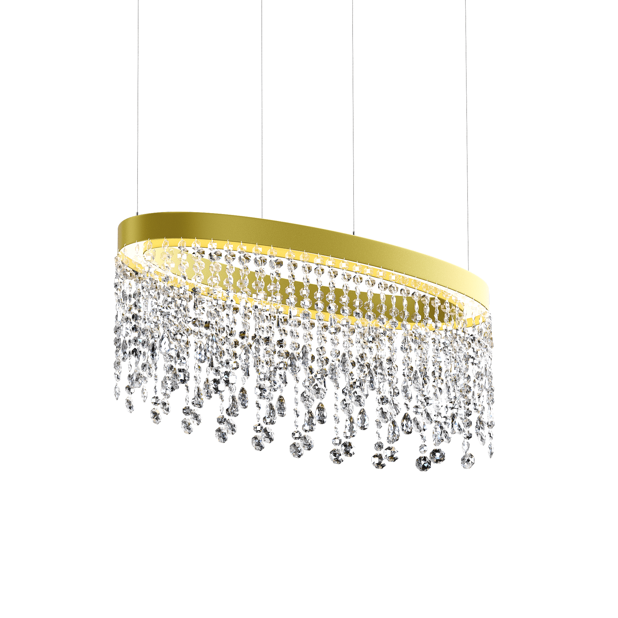 Подвесная овальная светодиодная люстра с хрусталем золотая 90х30 3000К Eclisse