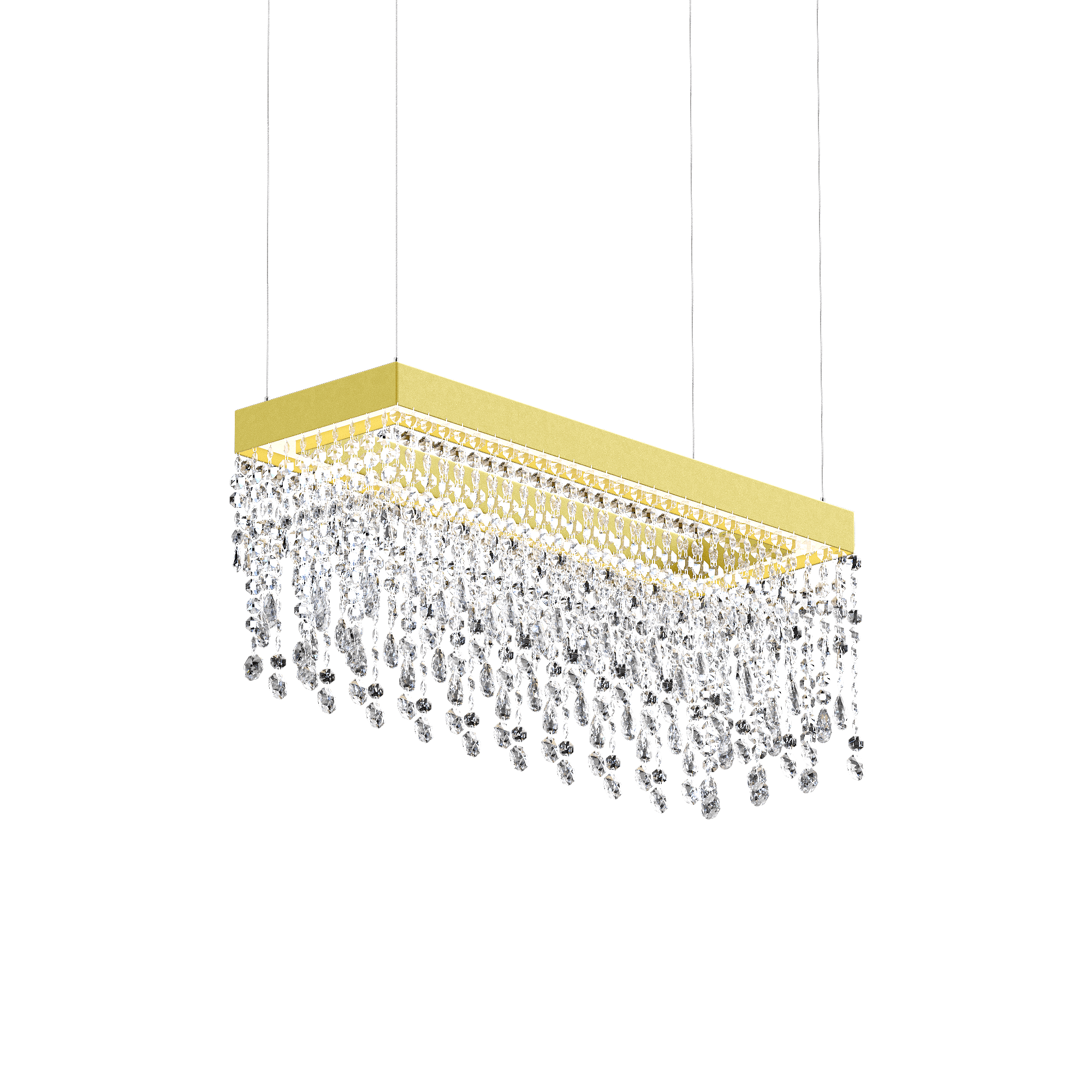 Подвесная прямоугольная светодиодная люстра с хрусталем золотая 90х30 3000К Eclisse