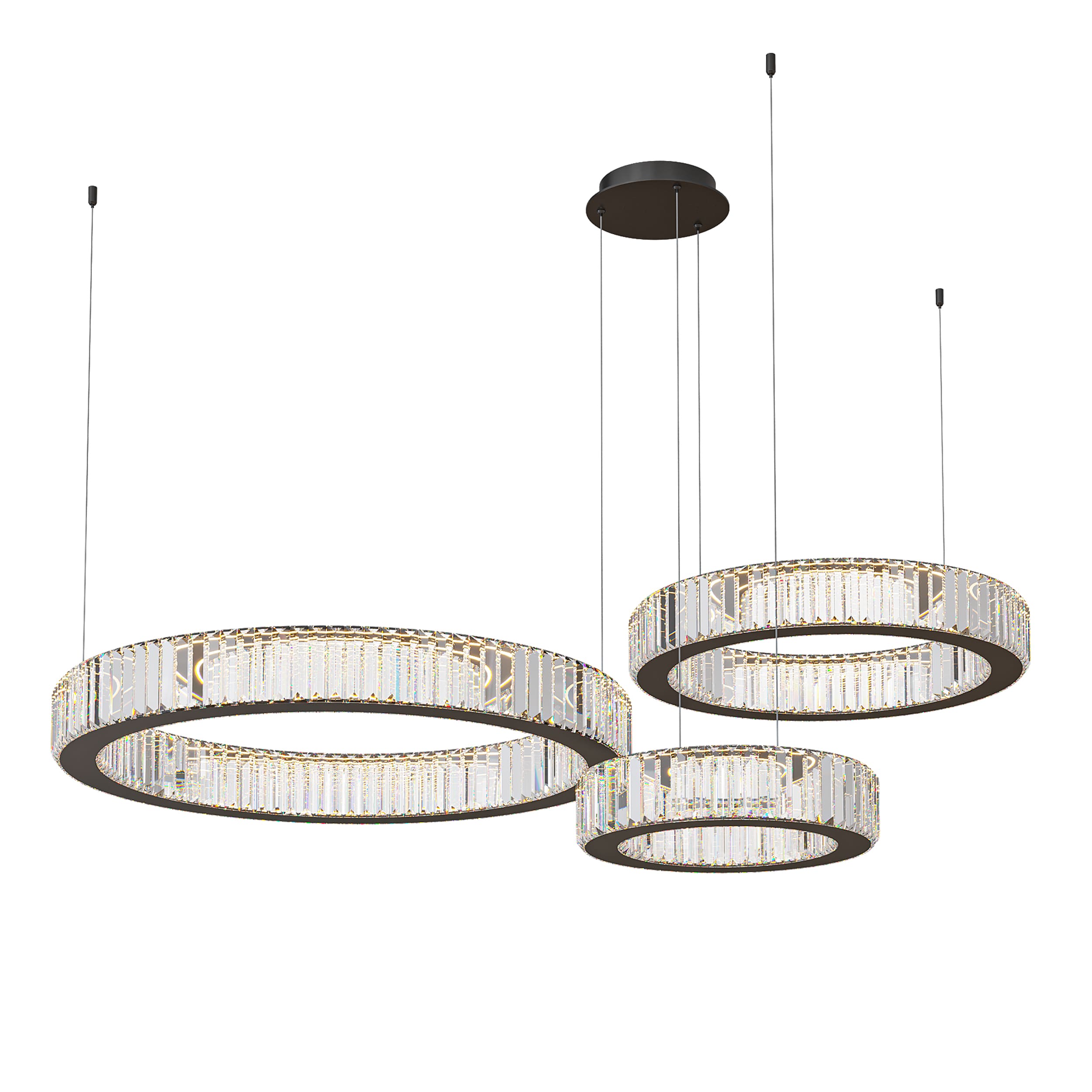 Подвесная светодиодная люстра кольца с прозрачными рассеивателями в виде прямоугольных хрустальных пластин черная D40+60+80 4000К BERTOLDA Horizontal
