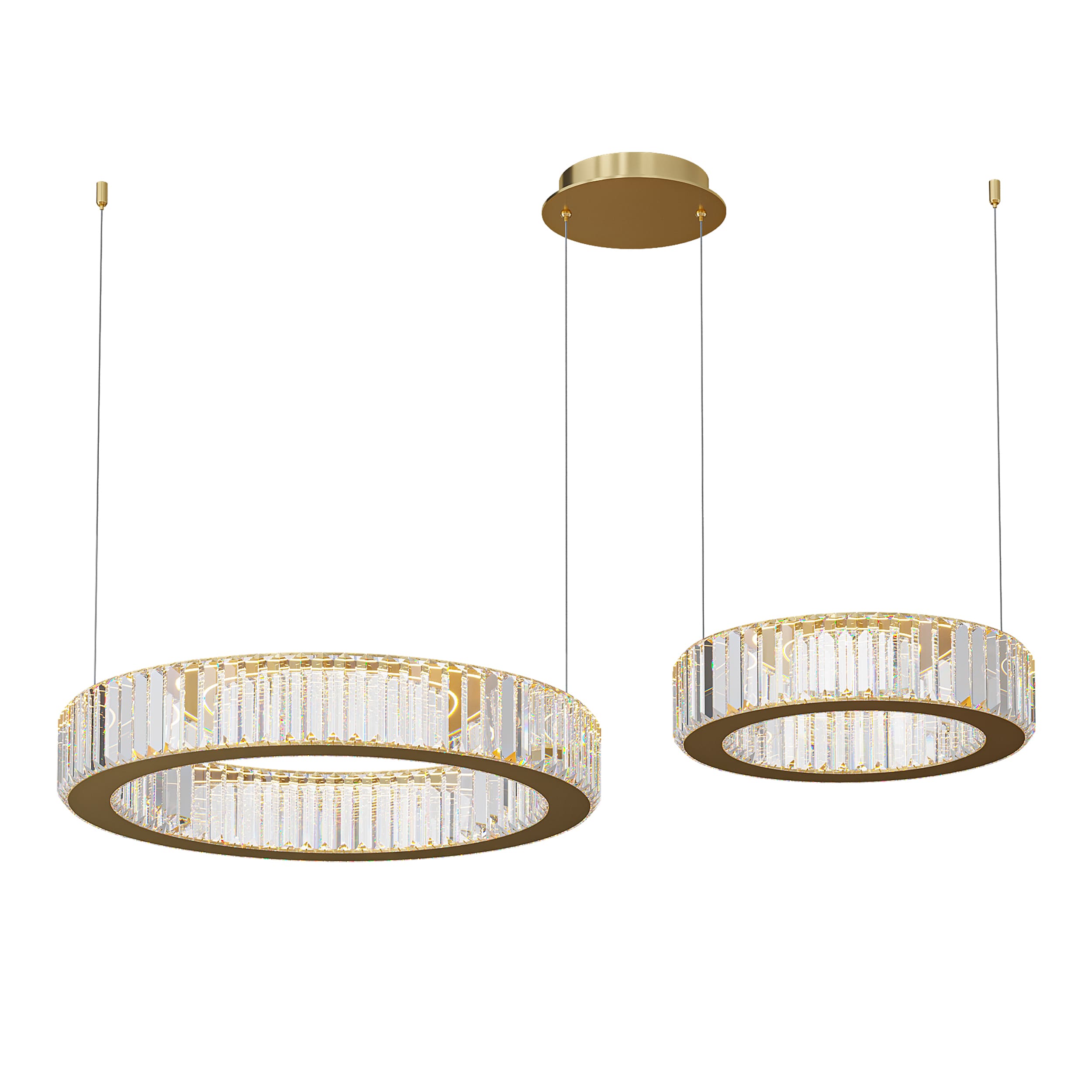Подвесная светодиодная люстра кольца с прозрачными рассеивателями в виде прямоугольных хрустальных пластин золотая D40+60 4000К BERTOLDA Horizontal