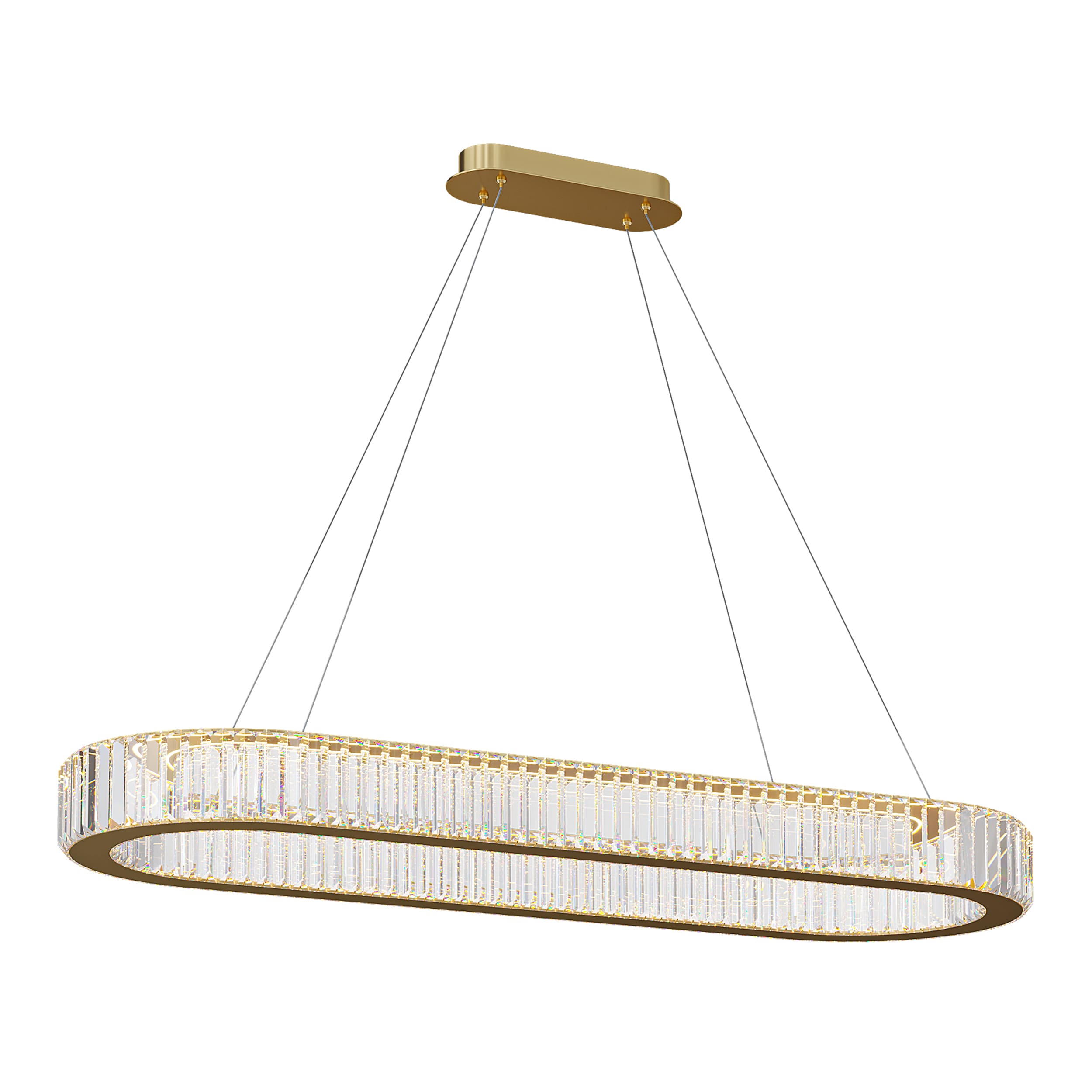 Подвесная светодиодная люстра овальная с прозрачными рассеивателями в виде прямоугольных хрустальных пластин золотая 120х40 3000К BERTOLDA Horizontal
