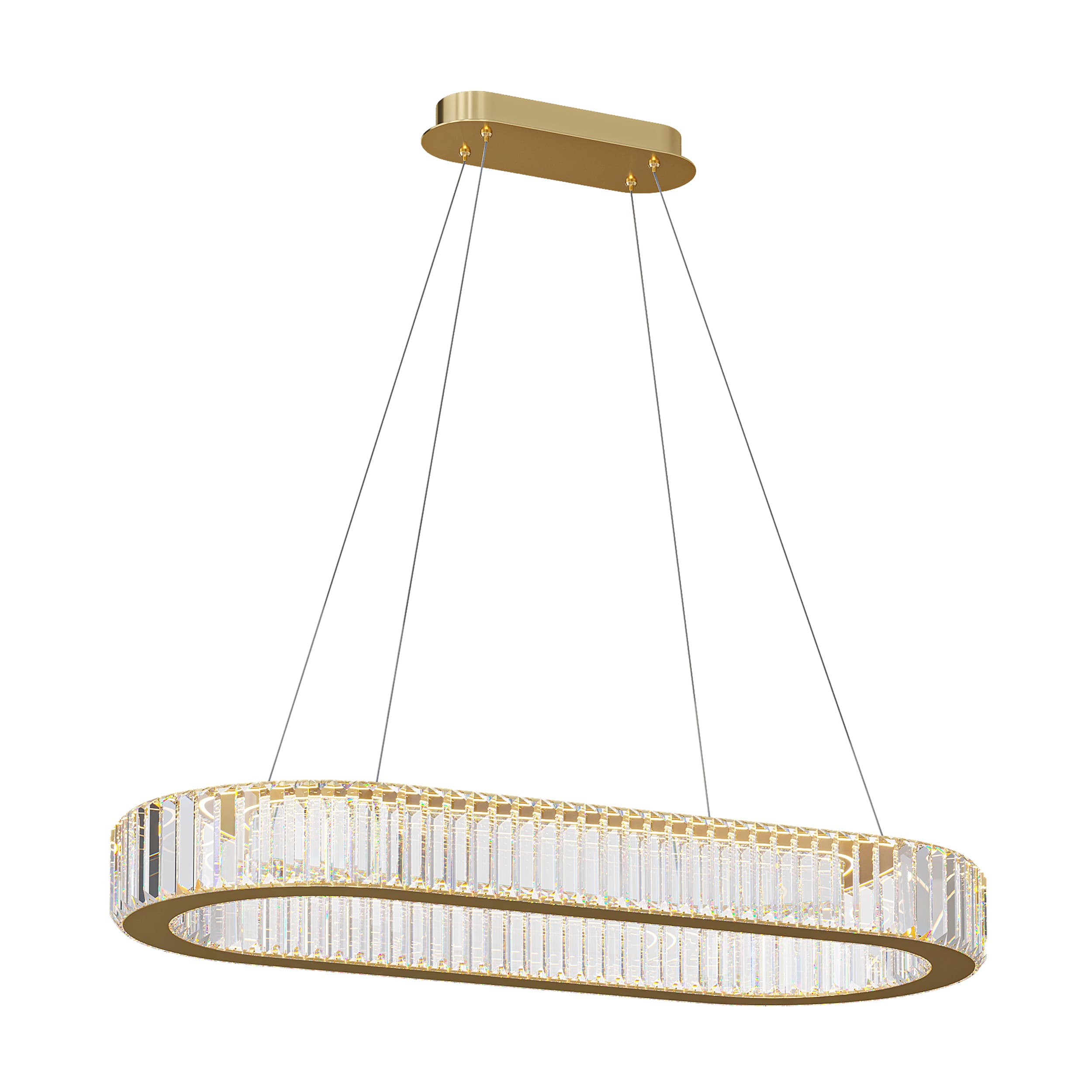 Подвесная светодиодная люстра овальная с прозрачными рассеивателями в виде прямоугольных хрустальных пластин золотая 90х40 3000К BERTOLDA Horizontal