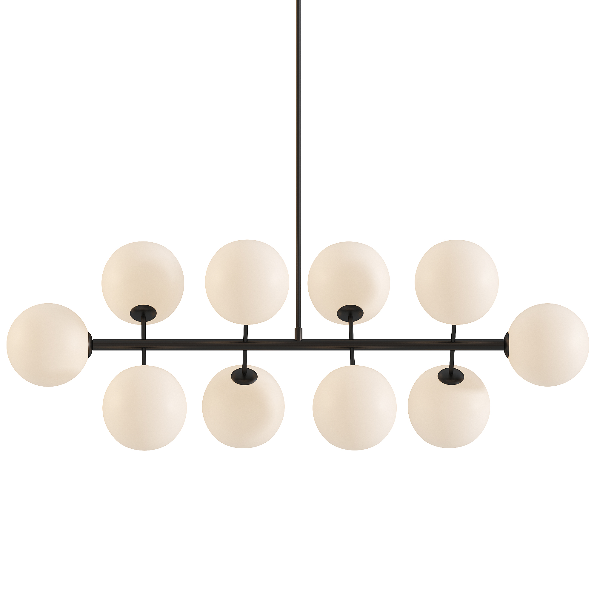 Линейная люстра Globe на штанге 10 шаров — эффектное решение для современных интерьеров, где важны ровный свет и чёткая геометрия над продолговатыми зонами: обеденным столом, кухонным островом, барной стойкой или рабочей поверхностью. Плафоны из опалового стекла дают мягкое равномерное освещение без бликов по всей длине, а чёрный металлический каркас подчёркивает аккуратную линию и выглядит собранно даже в просторных помещениях. Конструкция на штанге обеспечивает стабильный монтаж и идеальную горизонталь. Модель совместима с лампами разных типов (LED, накаливания): выбирайте 2700–3000K для уютной атмосферы, 4000K — для повседневных задач, 6500K — для более «свежего» рабочего света. Люстра органично сочетается с минимализмом, нео-деко и современной классикой; в каталоге нашего интернет-магазина вы найдёте и другие модели в схожей стилистике. Заказать подвесную люстру с шарами вы можете прямо сейчас в нашем интернет-магазине. Мы — производитель, а значит — контролируем качество, цену и сроки. Доставим по всей России и СНГ.